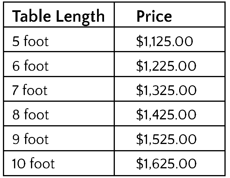 Note: We use pre-dried wood for all of our custom tables. Even so, there is the possibility of wood still shrinking after a few months to a year after you receive your table. This can be due to climate, temperature and a variety of other factors. This is the nature of wood. It is unpredictable and we cannot control the outcome. Not all tables are affected by this but the odd table is. Please know that we cannot fix any minor gaps that occur over the years. Consider it a unique marking to your table.